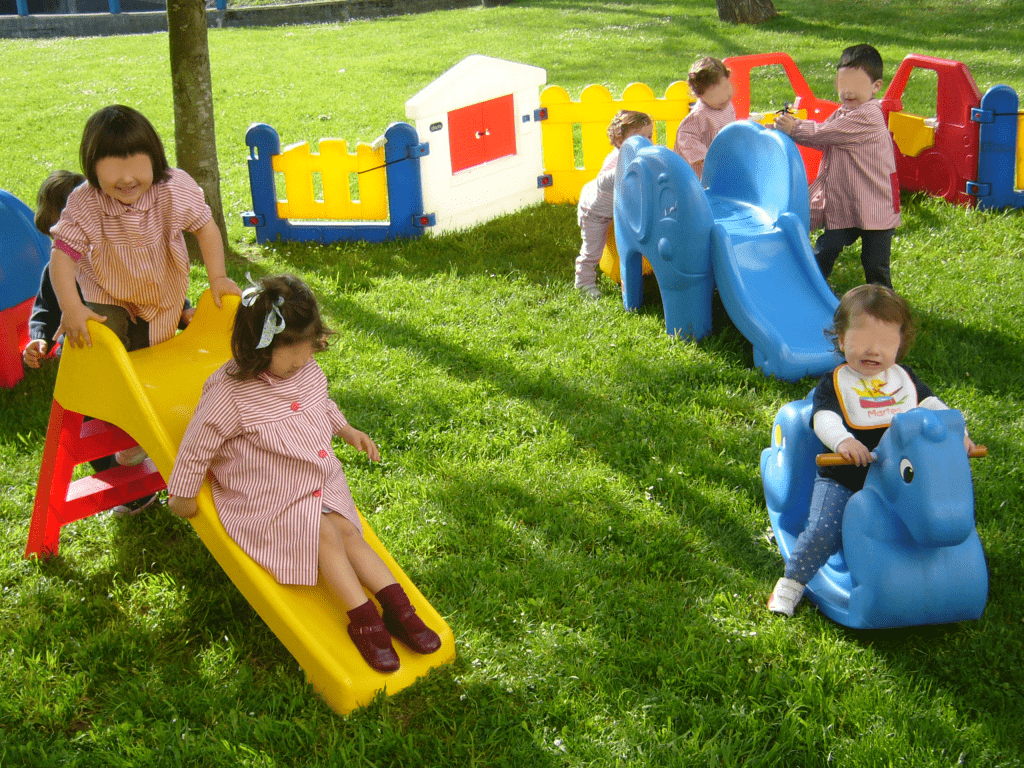 Así, los niños disfrutan al aire libre de los toboganes, motos, coches, balancines y demás juguetes distribuidos por el jardín. También los bebés que aún no caminan disfrutan del buen tiempo descansando en sus hamaquitas a la sombra o en la zona de juegos adaptada para su temprana edad.